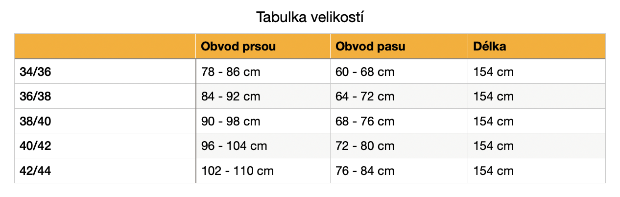 Látka je velmi elastická a uvedená velikost sedí na dvě velikosti. Délka šatů je vhodná na výšku postavy 172-178 cm.
